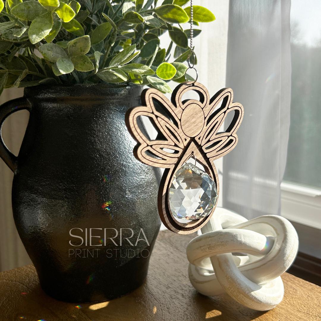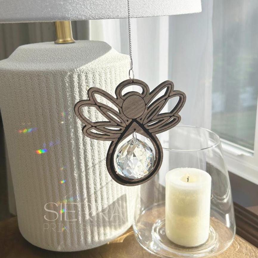 🔆One 40 mm (1.5") clear crystal ball prism surrounded by an angel