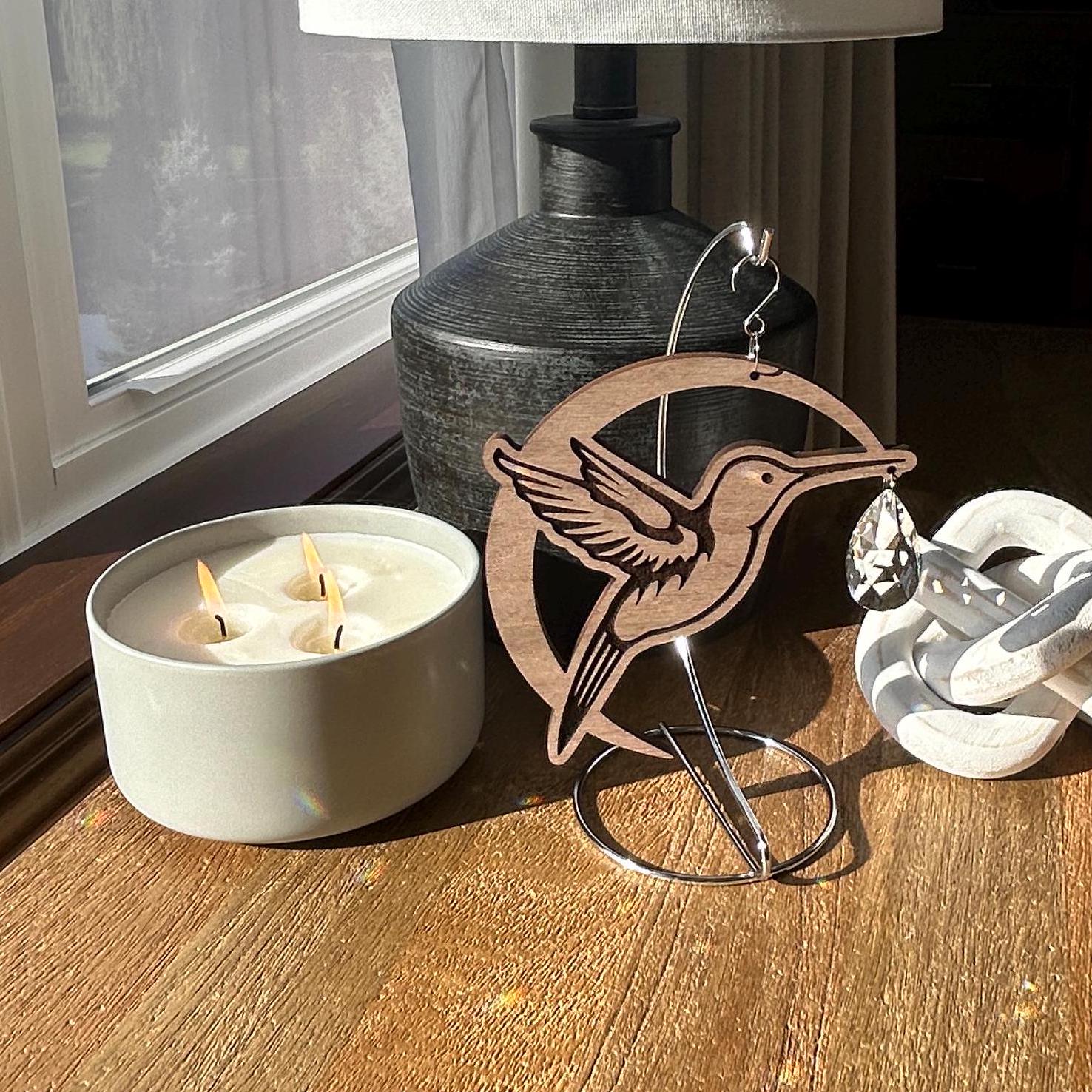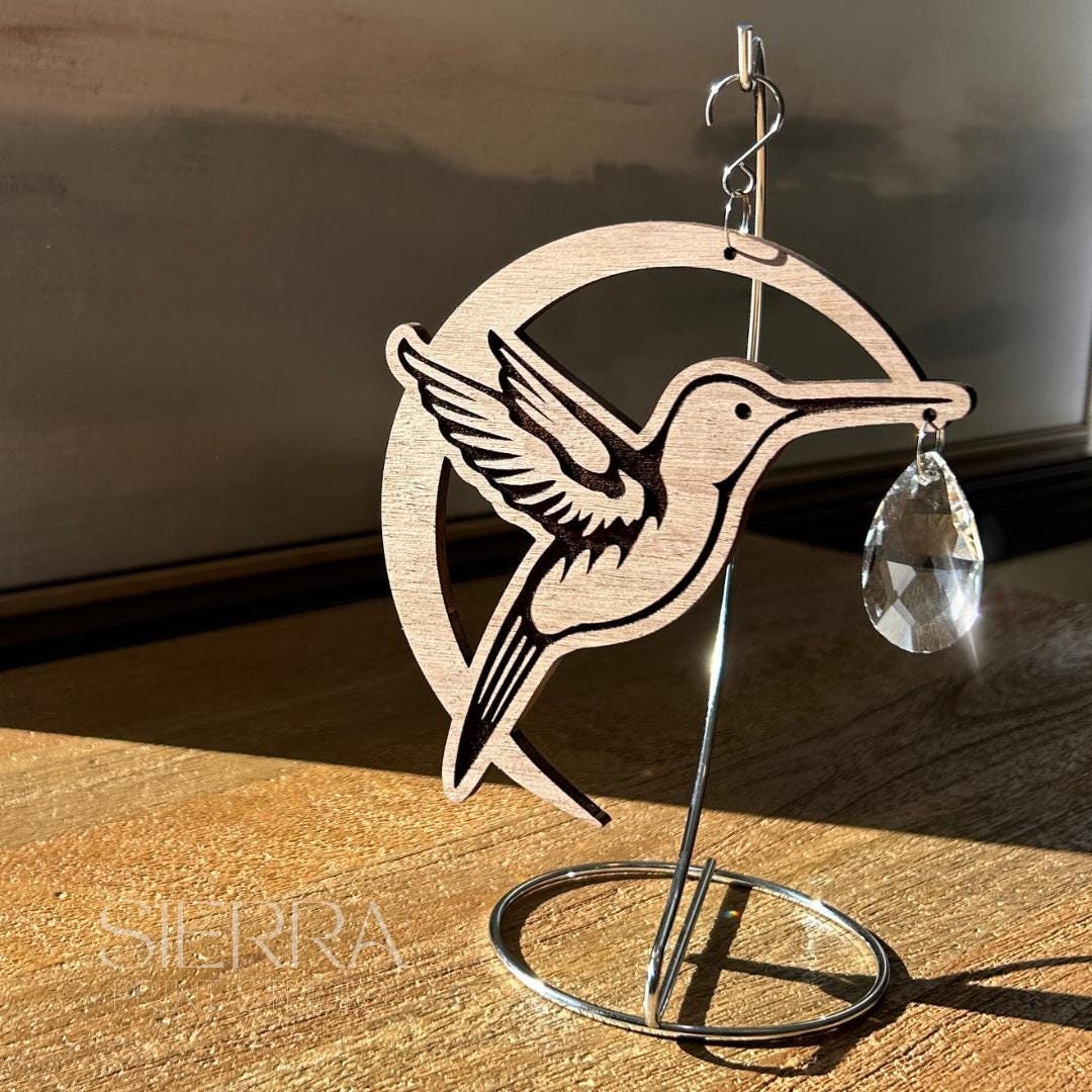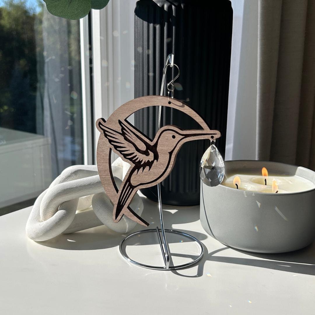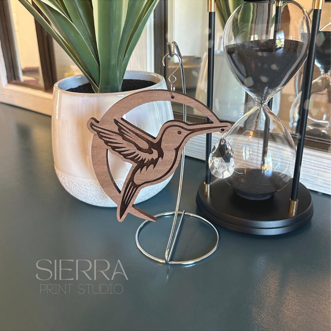 〰️The hummingbird is laser cut and engraved using walnut veneer.