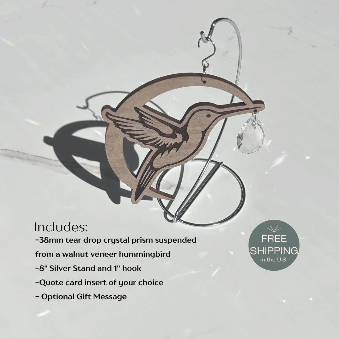🔆One 40 mm (1.5") clear crystal ball prism surrounded by a hummingbird.